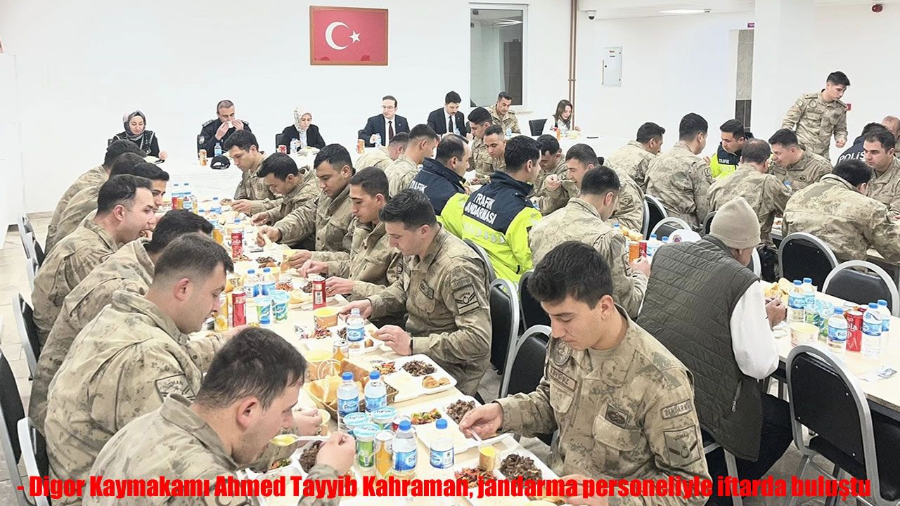 HABER49- Digor Kaymakamı Ahmed Tayyib Kahraman, İlçe Jandarma Komutanlığı tarafından düzenlenen iftar programına katılarak görev başındaki güvenlik güçleriyle bir araya geldi. Ramazan ayının birlik, dayanışma ve paylaşma ruhunun ön plana çıktığı programda, kamu güvenliğinin sağlanması için fedakarca görev yapan personelle samimi bir ortamda sohbet edildi.