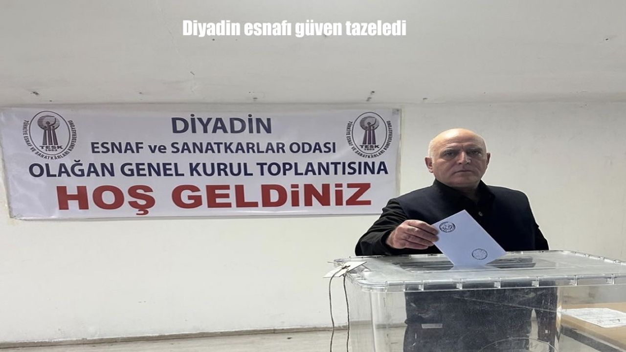 Diyadin'de faaliyet gösteren esnaf ve sanatkârların yoğun ilgi gösterdiği genel kurulda, oda faaliyetleri ve esnafın mevcut durumu değerlendirilirken, yapılan oylama sonucunda üyelerin istikrardan yana tercih kullandığı görüldü. Seçim sonuçları, esnafın mevcut yönetime duyduğu güvenin devam ettiğini ortaya koydu.