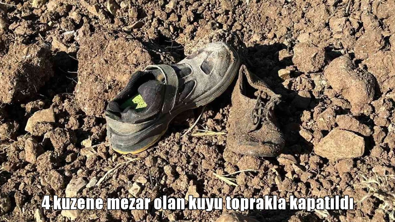 4 kuzene mezar olan kuyu, cansız bedenler çıkartıldıktan sonra toprakla kapatıldı. Alan dron ile görüntülenirken, kapatılan kuyunun üzerinde bulunan ayakkabılar yürekleri dağladı.