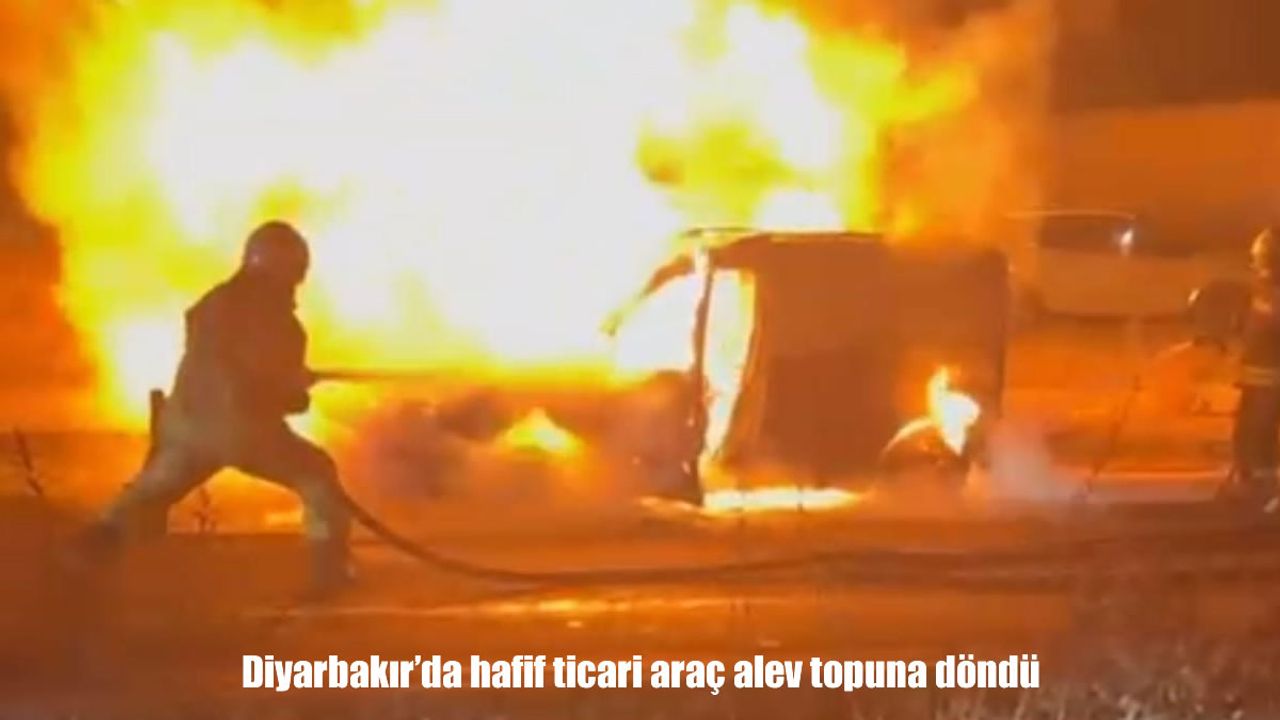 HABER49- Diyarbakır’da seyir halindeki hafif ticari araç alev topuna dönerek kullanılamaz hale geldi.