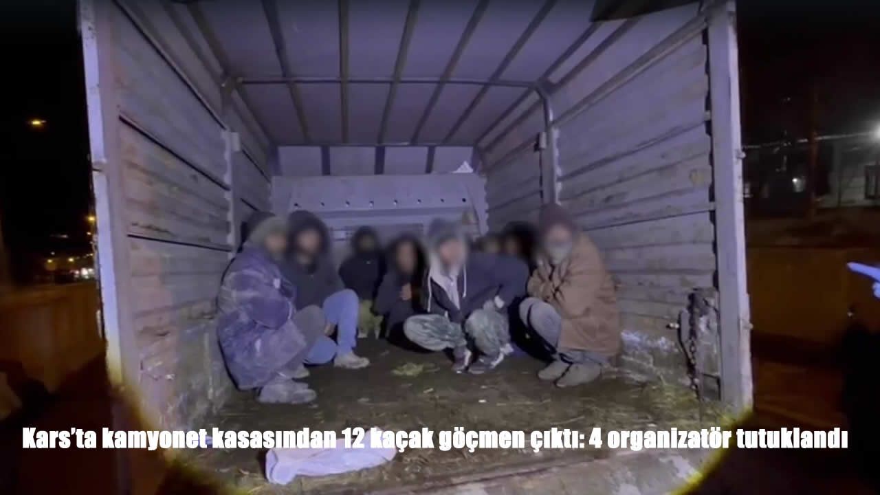 HABER49- Kars'ta durdurulan bir kamyonetin kasasında 12 Afganistan uyruklu düzensiz göçmen yakalandı. Gözaltına alınan 4 organizatör tutuklanırken, göçmenlerden 2'sinin farklı suçlardan arandığı ortaya çıktı.