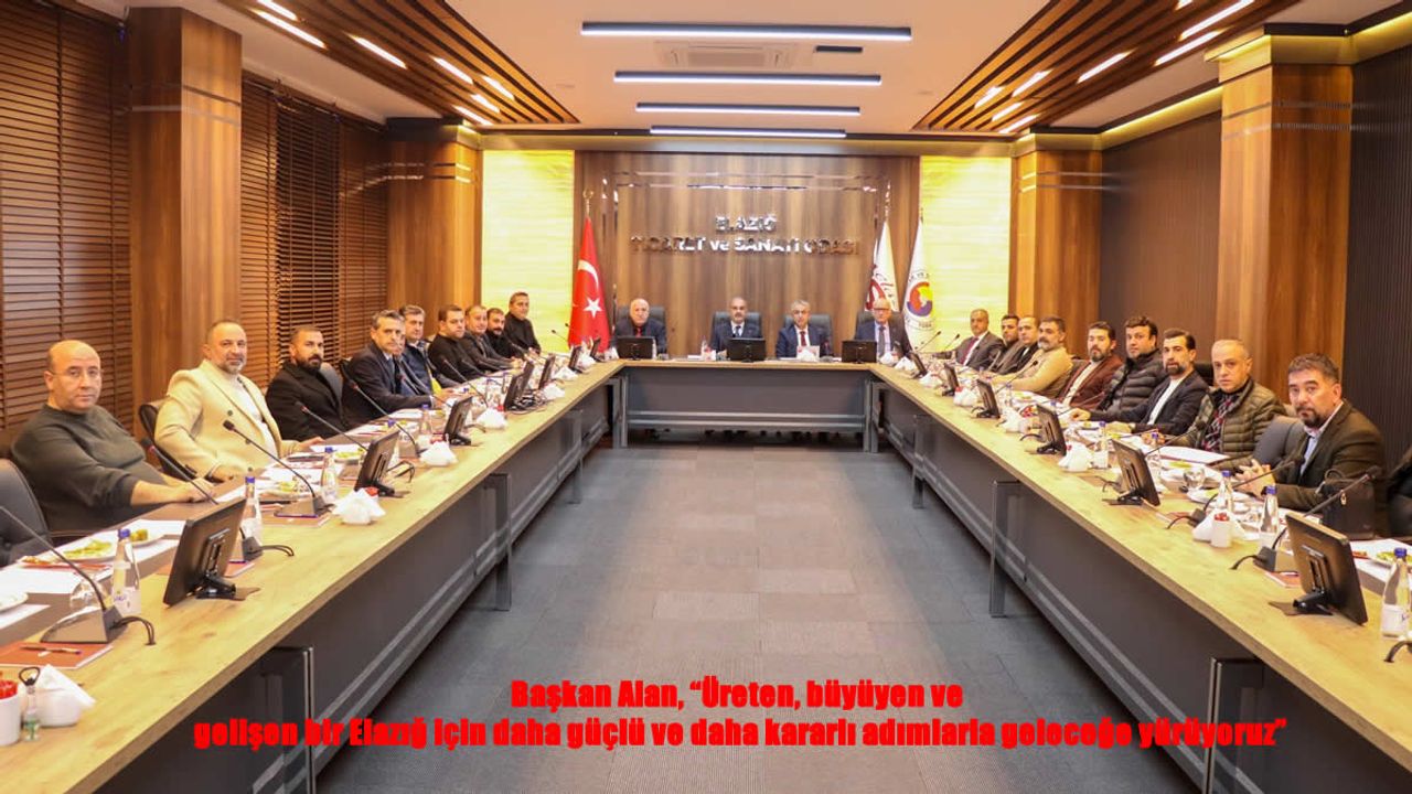 Kentin sanayi ve ekonomisini daha da güçlendirmek, sektörleri markalaştırmak amacıyla yoğun bir çalışma yürüttüklerini vurgulayan Alan, Elazığ TSO olarak şehrin ekonomik potansiyelini artıracak stratejik adımları kararlılıkla hayata geçirdiklerini ifade etti. Bu kapsamda 6-7-8 Şubat tarihlerinde Ahmet Tevfik Ozan Fuar ve Kongre Merkezi’nde düzenlenecek Elazığ Ticaret Fuarı ile sanayiden otomotive, gıdadan tekstile, inşaattan teknolojiye kadar tüm sektörlerin aynı çatı altında buluşturulacağını dile getirdi. Alan, söz konusu fuarın Elazığ için yepyeni bir başlangıcın güçlü adımı olacağını belirterek, meclis üyelerinden aldıkları destekle organizasyonun yoğun katılımla gerçekleşeceğine inandığını ve iş dünyasına hayırlı olmasını dilediğini söyledi.