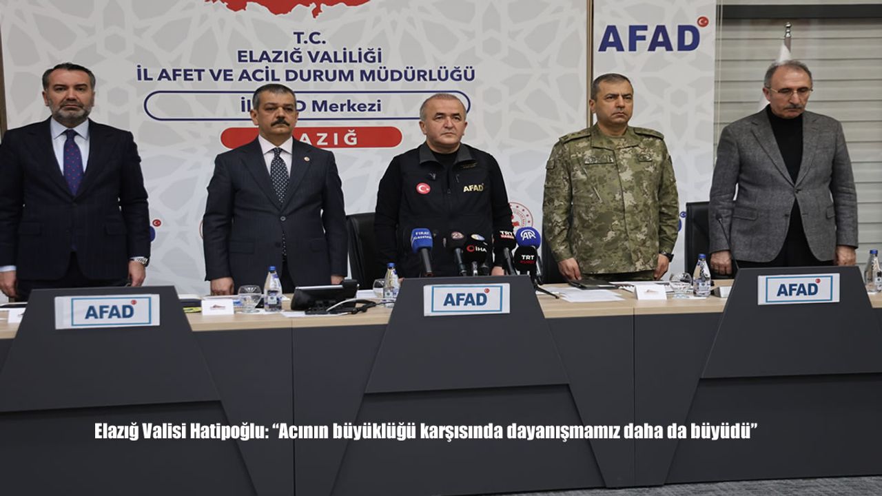 Vali Hatipoğlu, "Bu süreçte ortaya konulan tablo, devlet ile milletin omuz omuza verdiği en güçlü dayanışma örneklerinden birisi olmuştur. Arama kurtarma çalışmalarında ve enkaz başlarında sabahlayan ekiplerimizin yanında bir şişe suyu paylaşan vatandaşımız, bir battaniyeyi omuzuna alıp yola çıkan gençlerimiz, yardım tırlarını gözyaşlarıyla uğurlayan annelerimiz, zor zamanlarda nasıl bir dayanışma gerçekleştiğini ortaya koymuştur. Türkiye Cumhuriyeti devletinde bu dayanışma ruhu milletimizi ayakta tutan en büyük güç olmuştur. Elazığ ilimiz 2020 yılında yaşadığı yıkıcı depremlerin ardından 6 Şubat Kahramanmaraş merkezli depremden de önemli ölçüde etkilenmiştir. Ancak yine Elazığ, hemen komşu ili olan Malatya iline büyük bir seferberlik içerisinde yardım için koşmuştur. Depremler sonucunda 11 ilde milyonlarca vatandaşımız barınma ihtiyacıyla karşı karşıya kalmıştır. Ancak devletimiz bu büyük yıkım karşısında tereddüt etmeden tarihin en büyük konut seferberliğine başlamıştır. Teslim edilen her anahtar, devletimizin sosyal sorumluluk anlayışının vatandaşımızla kurduğu güçlü bağın ve devlet millet dayanışmasının somut bir örneği olmuştur" dedi.