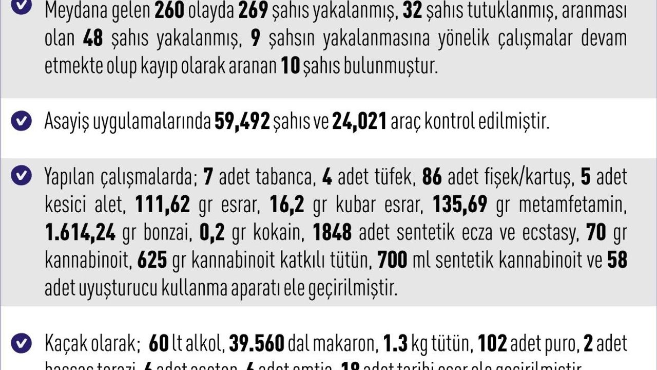 Asayiş Denetimleri ve Ele Geçirilen Malzemeler