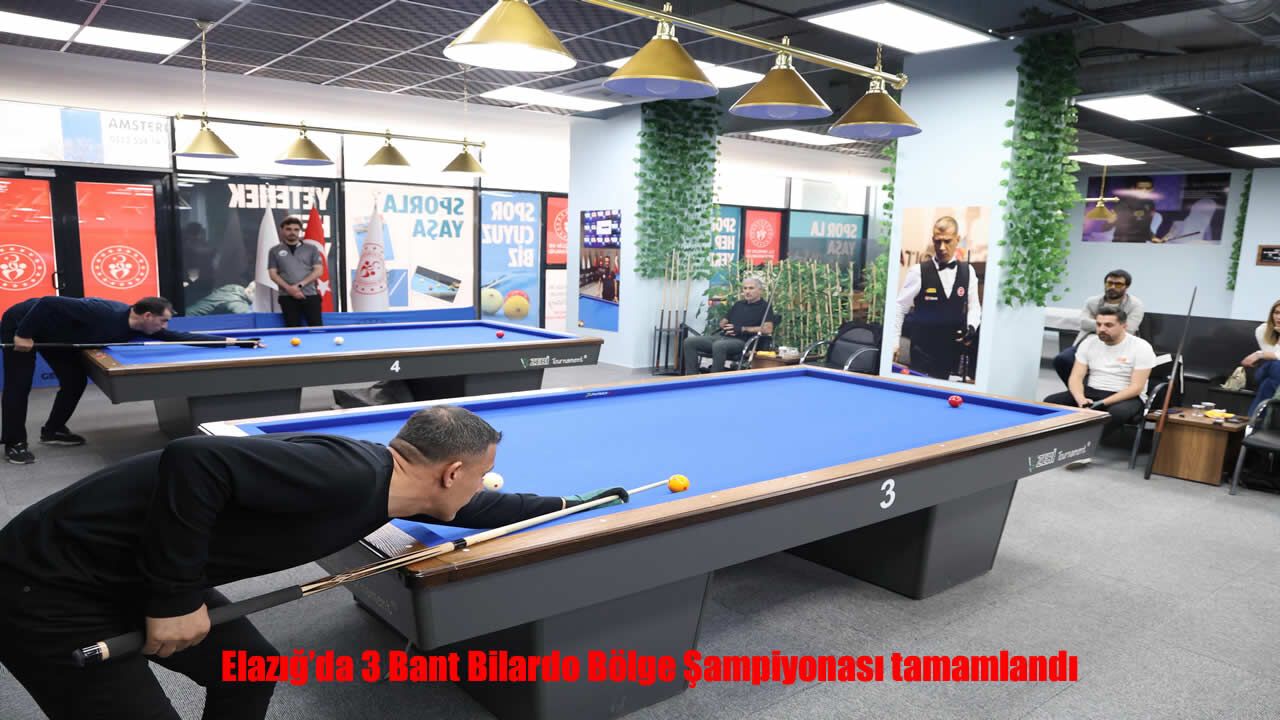 Elazığ’da düzenlenen 3 Bant Bilardo Bölge Şampiyonası, büyük bir katılım ve heyecanla tamamlandı. Elazığ Yaşayan Stadyum Bilardo Salonu’nda gerçekleştirilen organizasyona, 12 ilden toplam 76 sporcu katıldı. 2 gün süren şampiyona boyunca sporcular, üst düzey performanslarıyla izleyenlere keyifli anlar yaşattı. Bölgenin en yetenekli bilardo oyuncularını bir araya getiren turnuva, hem rekabet seviyesi hem de sportmenlik açısından dikkat çekti. Organizasyon sonunda dereceye giren sporculara ödülleri takdim edilirken, turnuva katılımcılar ve izleyiciler tarafından büyük beğeni topladı.