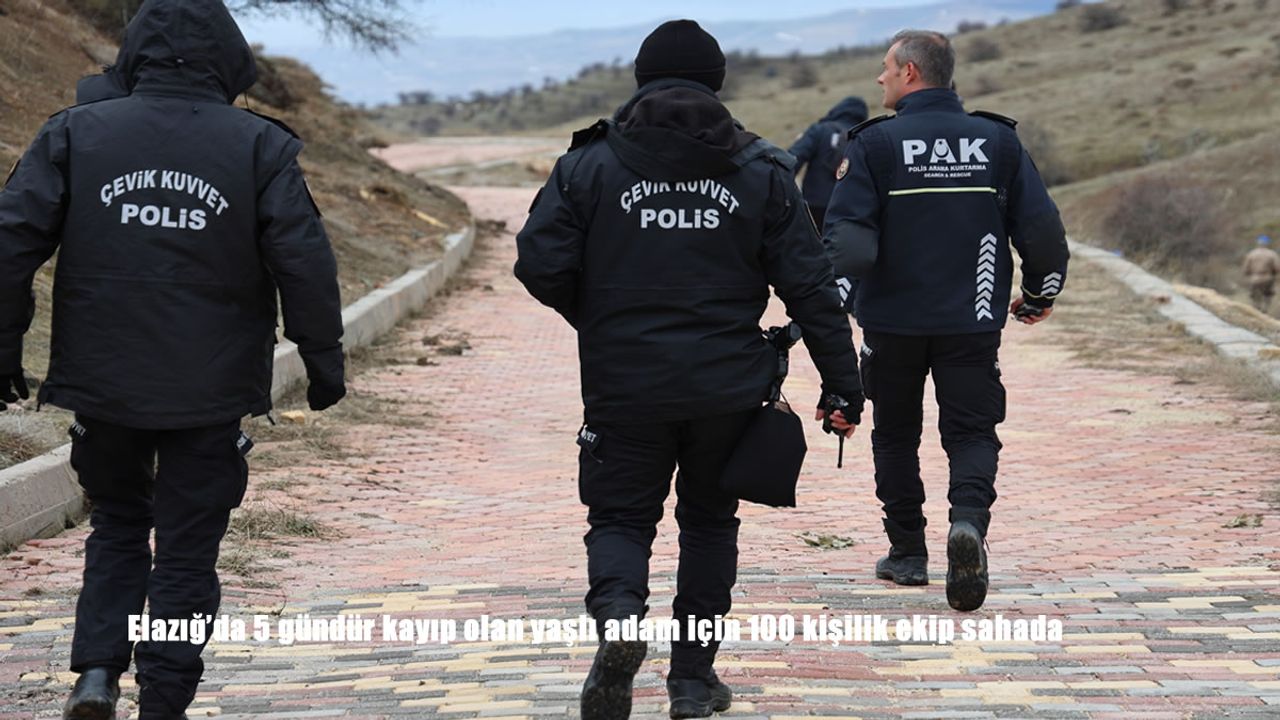 HABER49-Olay, 5 gün önce Esentepe Mahallesi'nde meydana geldi. Edinilen bilgiye göre, 74 yaşındaki İbrahim Kaya, saat 10.00 sıralarında evden çıkarak geri dönmedi. Yaşlı adamı bulamayan ailesi durumu, 112 Acil Çağrı Merkezi'ne bildirdi. İhbar sonrası harekete geçen ekipler, yaşlı adamı bulmak için çalışma başlattı. AFAD, UMKE, Emniyet Müdürlüğü, İl Jandarma Komutanlığı, İl Milli Eğitim Müdürlüğü, Elazığ Belediyesi, Karayolları ekipleri, sivil toplum kuruluşları ve gönüllülerden oluşan 100 kişilik ekip ile 5 gündür kaybolan yaşlı adamın bulunması için havadan ve karadan çalışmalarını sürdürüyor. Arama operasyonuna Malatya ve Diyarbakır'dan getirilen özel eğitimli iz takip ve kadavra köpekleri, havadan drone desteğiyle birleşerek arazi taramasını sürdürüyor.