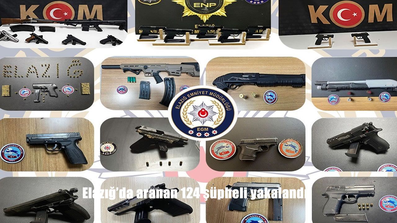 HABER49-Elazığ Cumhuriyet Başsavcılığı koordinesinde İl Emniyet Müdürlüğü Asayiş, KOM, Narkotik ve Çocuk Şube Müdürlükleri tarafından son bir ay içerisinde yapılan çalışmalarda kesinleşmiş hapis cezası ile aranan toplam 124 şahıs yakalandı. Şüpheliler, İl Emniyet Müdürlüğü’nde tamamlanan işlemlerinin ardından sevk edildikleri adli makamlarca tutuklandı.