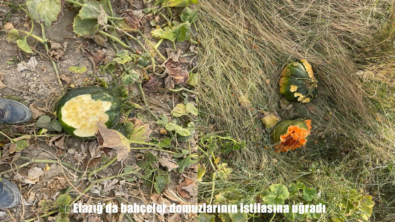 Baskil ilçesine bağlı Konacık Haydarkolu Mezrası’na inen domuzlar bahçe ve arazilere zarar verdi. Onlarca dönümlük alanları ve bahçeleri talan eden domuzlar nedeniyle çiftçiler zor durumda kaldı. Domuz sürüsünün ekili alanlara verdiği zararlar çiftçilerce cep telefonu ile görüntülendi.