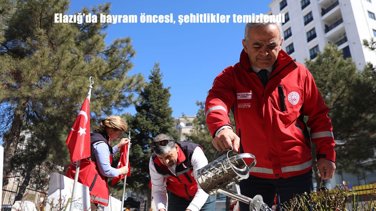 81 ilde bakanlık koordinesinde tüm şehitlerin mezarlarının bakım, onarım ve temizliğinin yapıldığını belirten Elazığ Aile ve Sosyal Hizmetler İl Müdürü Ömer Faruk Ergün, "Bizler de Elazığ'da şehitliklere ve aziz şehitlerimizin mezarlarının bulunduğu kabristanları ziyaret ederek bakım, onarım ve temizlik yaptık. Bugün, İcadiye şehitliğinde çalışma yaptık. Bu toprakları bizlere vatan kılan, vatanımızın birliği, milletimizin bağımsızlığı, huzuru ve istiklali için gözünü kırpmadan canını feda eden aziz şehitlerimize bizlere bırakmış oldukları derin mirasa saygı olarak bugün küçük de olsa minnettarlığımızı göstermek istedik" dedi.