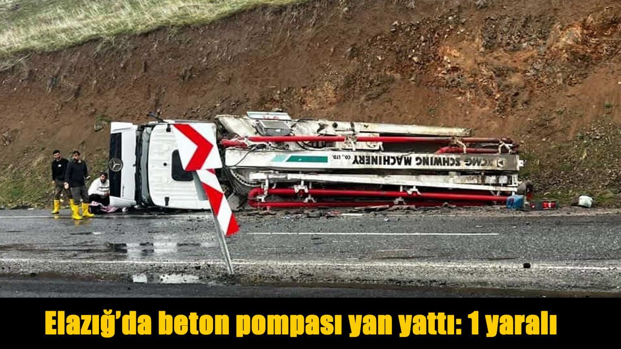 HABER49- Elazığ’da yağıştan dolayı sürücüsünün direksiyon hakimiyetini kaybettiği beton pompa aracı yan yattı. Kazada 1 kişi yaralandı.