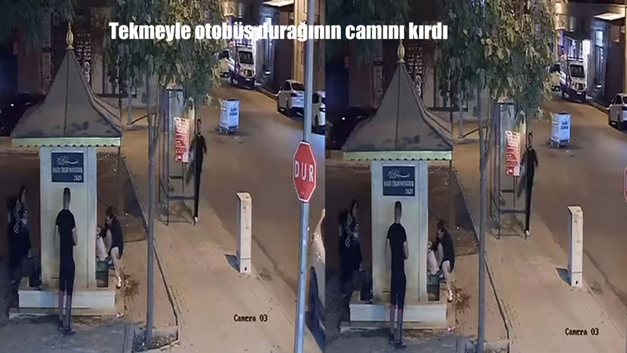 Olay, merkeze bağlı Mustafapaşa Mahallesi'nde meydana geldi. Edinilen bilgiye göre, kimliği öğrenilemeyen bir kişi, yolda yürürken otobüs durağının camına tekme atarak kırdı. Cam parçaları yola savrulurken, şahıs bir şey olmamış gibi yoluna devam etti. O anlar ise saniye saniye güvenlik kamerasına yansıdı.