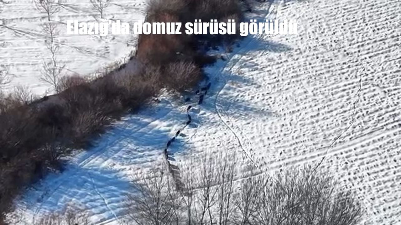 HABER49-Elazığ'da merkeze bağlı Selli köyünde domuz sürüsünü görüntülendi. Karların üstünde domuzları gören bir vatandaş, dronla domuzları takip etti. Doğada koşan sürü, bir süre sonra gözden kayboldu.