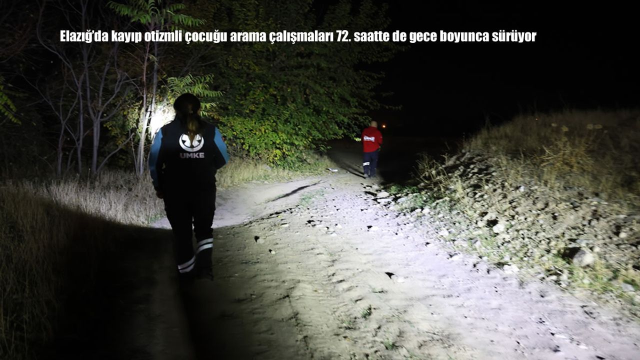 HABER49-Elazığ'da kayıp 11 yaşındaki otizmli Veysel Bilen'i arama çalışmaları 72. saatinde de gece boyunca devam ediyor. AFAD, PAK, UMKE, jandarma ve polis ekipleri bölgede arama alanını genişleterek çalışmalarını aralıksız sürdürüyor. Ekip sayısının artırıldığı bölgede aramalar hem karadan hem de dron ile havadan yürütülüyor.