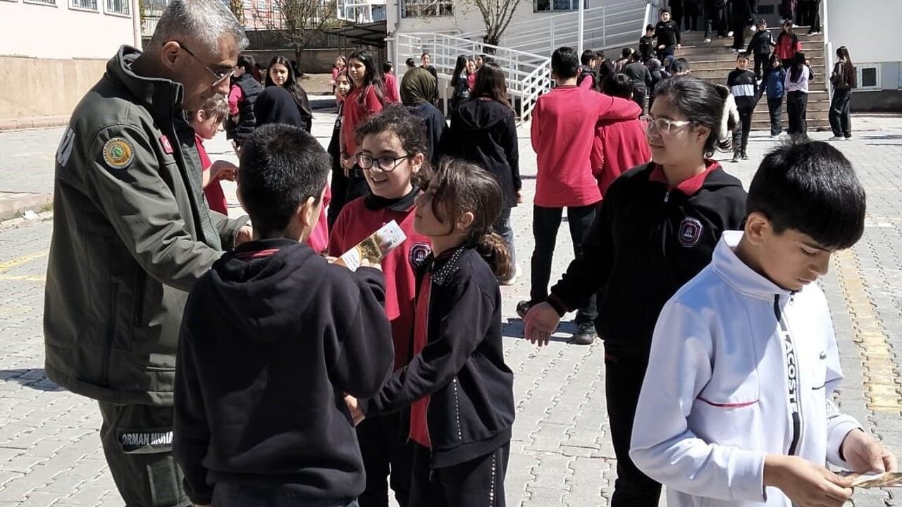 HABER49-Elazığ Orman Bölge Müdürlüğü tarafından gerçekleştirilen çalışmada, öğrencilere orman yangınlarının çıkış nedenleri, alınması gereken önlemler ve yangın anında yapılması gerekenler hakkında bilgi verildi. Eğitimlerde ormanların korunmasının önemi de vurgulandı.