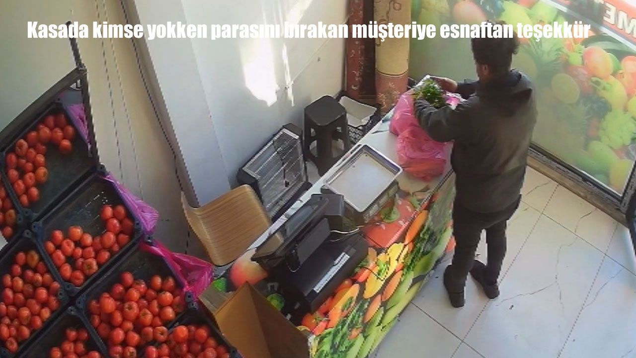 HABER49- Elazığ'ın Doğukent Mahallesi Seyda Molla Bahri Bulvarı üzerinde faaliyet gösteren bir manavda iki gün önce dikkat çekici bir olay yaşandı. İş yerinde personelin bulunmadığı sırada gelen bir müşteri, ihtiyaç duyduğu ürünleri alarak tarttı. Ardından telefonuyla hesaplayan şahıs, ücretini kasanın yanına bırakarak ayrıldı. Bırakılan paranın alışveriş tutarından fazla olduğu öğrenilirken o anlar iş yerinin güvenlik kamerasına yansıdı. Manav personeli Yusuf Tangül, müşterinin dükkanı kapalı zannetmeden önce seslendiğini ancak alanın büyük olmasından dolayı duyamadıklarını belirterek, "Müşteri gelip ürün alıyor, tartıp telefonda hesaplayıp parasını kasanın yanına bırakıyor. Çok güzel bir davranış. Toplum olarak takdir ettiğimiz, örnek olacak görüntüler" dedi.