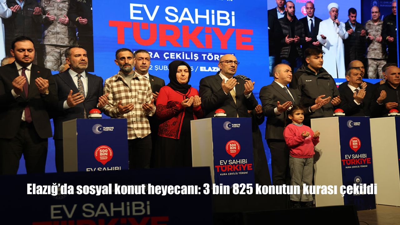 HABER49-Elazığ’da Çevre, Şehircilik ve İklim Değişikliği Bakanlığı ile Toplu Konut İdaresi Başkanlığı (TOKİ) koordinesinde gerçekleştirilen Ev Sahibi Türkiye 500 bin Sosyal Konut temalı Yüzyılın Konut Projesi kapsamında Fırat Üniversitesi Atatürk Kültür Merkezinde kura çekimi töreni düzenlendi. Törenle birlikte 3 bin 825 hak sahibi yeni yuvalarına kavuşmanın heyecanını yaşadı.