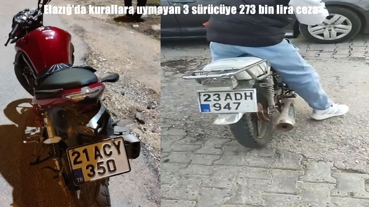 HABER49- Elazığ'da İl Emniyet Müdürlüğü Trafik Denetleme Şube Müdürlüğü ekipleri tarafından kent genelinde yapılan denetimlerde abartı egzoz kullanan A.A. idaresindeki 23 ADH 947 plakalı motosiklete 16 bin TL yazılarak 30 gün otoparka çekildi. M.T. idaresindeki 23 ACY 350 plakalı motosiklet sürücüsüne sigortasız ve ehliyet belgesi iptal edilmişken araç kullanmaktan 241, 243 TL ve K.T.K idaresindeki 38 ZF 494 plakalı otomobile abartı egzoz kullanmaktan 16 bin lira ceza yazılarak 30 gün süre ile otoparka çekildi. Toplam 3 araca 273 bin 243 lira ceza kesildi.