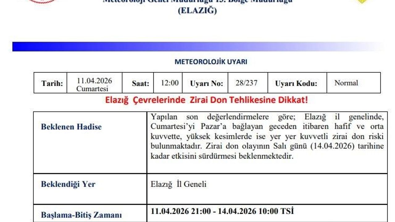 Zirai donun özellikle meyve ağaçları ve yeni ekilen ürünlerde zarara yol açabileceği bildirildi. Meteoroloji, üreticilerin gece saatlerinde tedbirli olmalarını ve hava durumunu yakından takip etmelerini istedi. Don riskinin bölge genelinde farklı seviyelerde etkili olabileceği, yüksek rakımlı bölgelerde ise daha şiddetli hissedileceği kaydedildi.