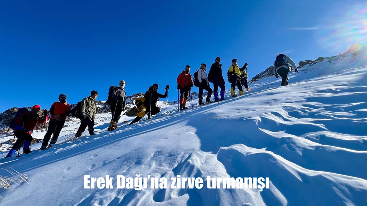 HABER49-Doğa tutkunlarını bir araya getiren Vadi Doğa Sporları Kulübü, hafta sonu etkinlikleri kapsamında rotasını Erek Dağı'na çevirdi. Sabahın erken saatlerinde tırmanışa başlayan grup, zorlu hava şartlarına ve dik yamaçlara rağmen kararlılıkla ilerleyerek zirveye ulaşmayı başardı. Tırmanış boyunca eşsiz Van Gölü manzarasının tadını çıkaran dağcılar, yaklaşık 5 saat süren zorlu bir yürüyüşün ardından en yüksek noktaya ulaştı. Zirve defterini imzalayan ekip, burada kulüp flamasını açarak başarılarını kutladı.