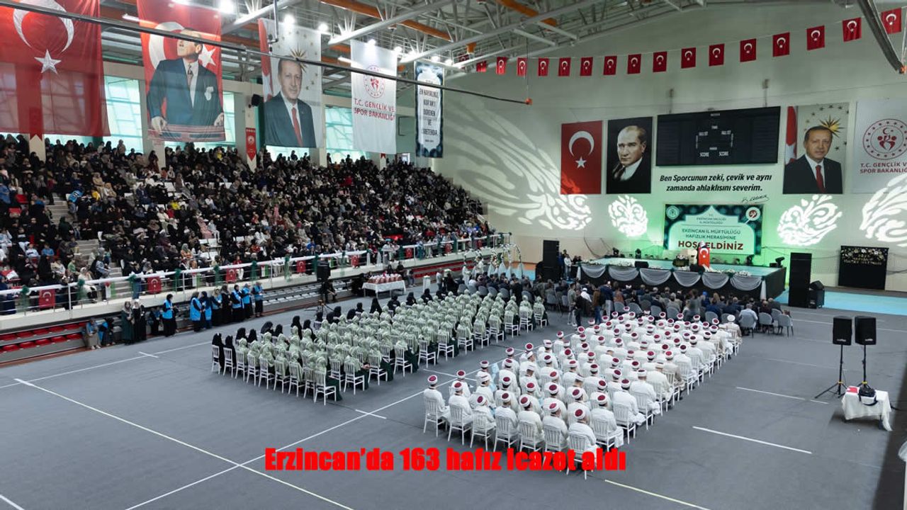HABER49- Erzincan’da düzenlenen anlamlı bir törenle 163 hafız, Kur’an-ı Kerim’i ezberleyerek hafızlık belgelerini aldı. Erzincan İl Müftülüğü tarafından Yaşar Erkan Kapalı Spor Salonu’nda gerçekleştirilen Hafızlık İcazet Merasimi, yoğun katılımla coşkulu bir atmosfere sahne oldu.