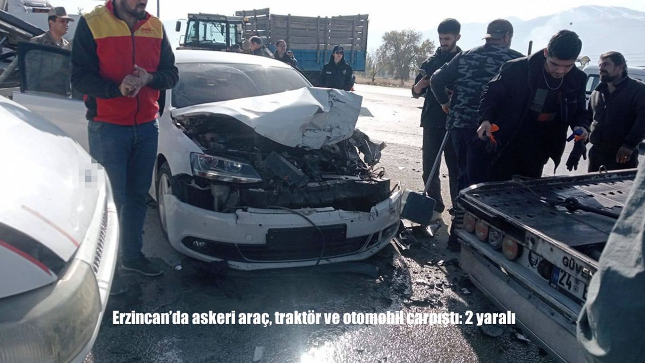 HABER49-Yeni Sanayi Bölgesi'nde askeri araç, traktör ve otomobilin karıştığı trafik kazası meydana geldi. Edinilen bilgiye göre, 23 FS 265, 60 ABJ 403 ve 24 AJ 988 plakalı araçların karıştığı kazada iki kişi yaralandı. Kazayı gören vatandaşların ihbarı üzerine olay yerine sağlık ve polis ekipleri sevk edildi. Sağlık ekiplerinin ilk müdahalenin ardından Erzincan Mengücek Gazi Eğitim ve Araştırma Hastanesi'ne kaldırılan yaralılardan birinin hayati tehlikesinin bulunduğu öğrenildi.