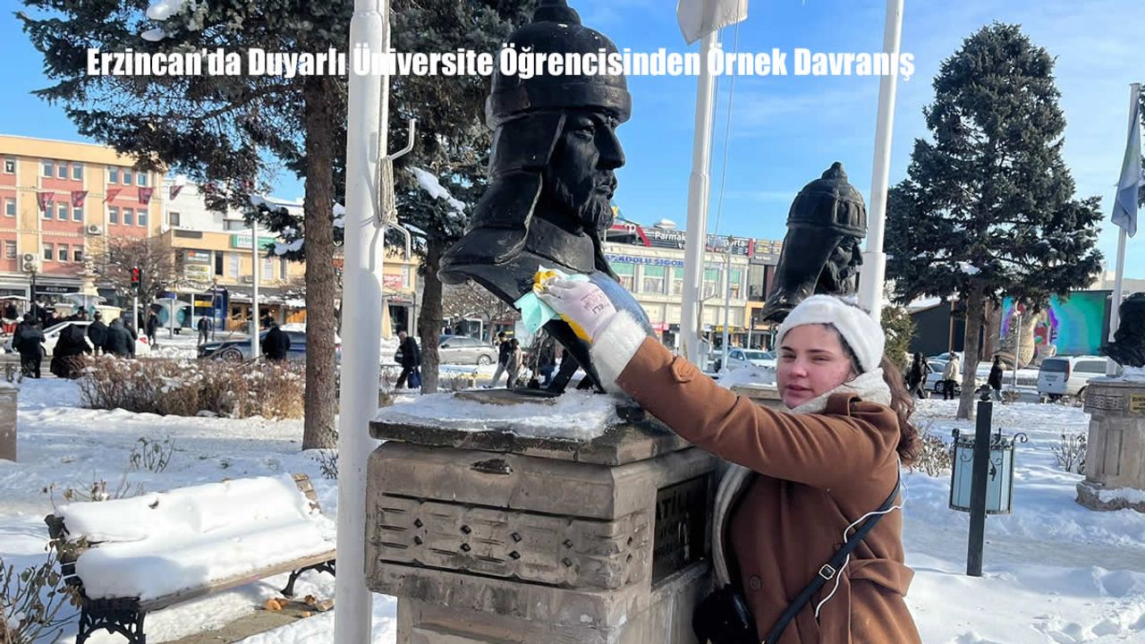 HABER49-Dörtyol mevkiinde bulunan Belediye Kültür Evi önündeki Türk büyüklerine ait büstlerin kirli ve kuş pislikleriyle kaplı olduğunu fark eden Çetin, duruma kayıtsız kalmadı. Kendi imkânlarıyla temin ettiği temizlik malzemeleriyle büstleri temizlemeye başladı. Soğuk havaya rağmen çalışmasını sürdüren üniversite öğrencisi, büstleri tek tek temizleyerek çevrenin daha düzenli ve temiz hale gelmesini sağladı.
