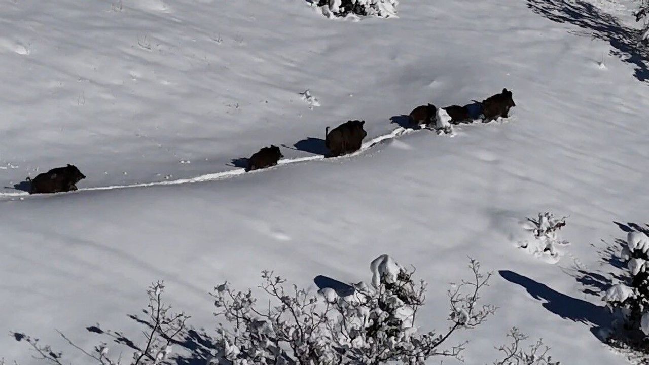 HABER49- Drone ile kaydedilen görüntüler, kış şartlarında yaban hayatının hayatta kalma mücadelesini gözler önüne serdi. Sürünün uyum içinde hareket ettiği ve zaman zaman yön değiştirerek araziyi kullandığı görüldü. Karla kaplı alanlarda birbirlerine yakın hareket eden domuzlar, doğanın zorlu koşullarında birlikte hayatta kalma çabalarını sürdürdü. Drone görüntüleri, doğa ve yaban hayatı meraklıları için eşsiz bir görsel sunarken, sürünün dağlık alana doğru yönelmesiyle kısa sürede gözden kaybolması dikkat çekti.