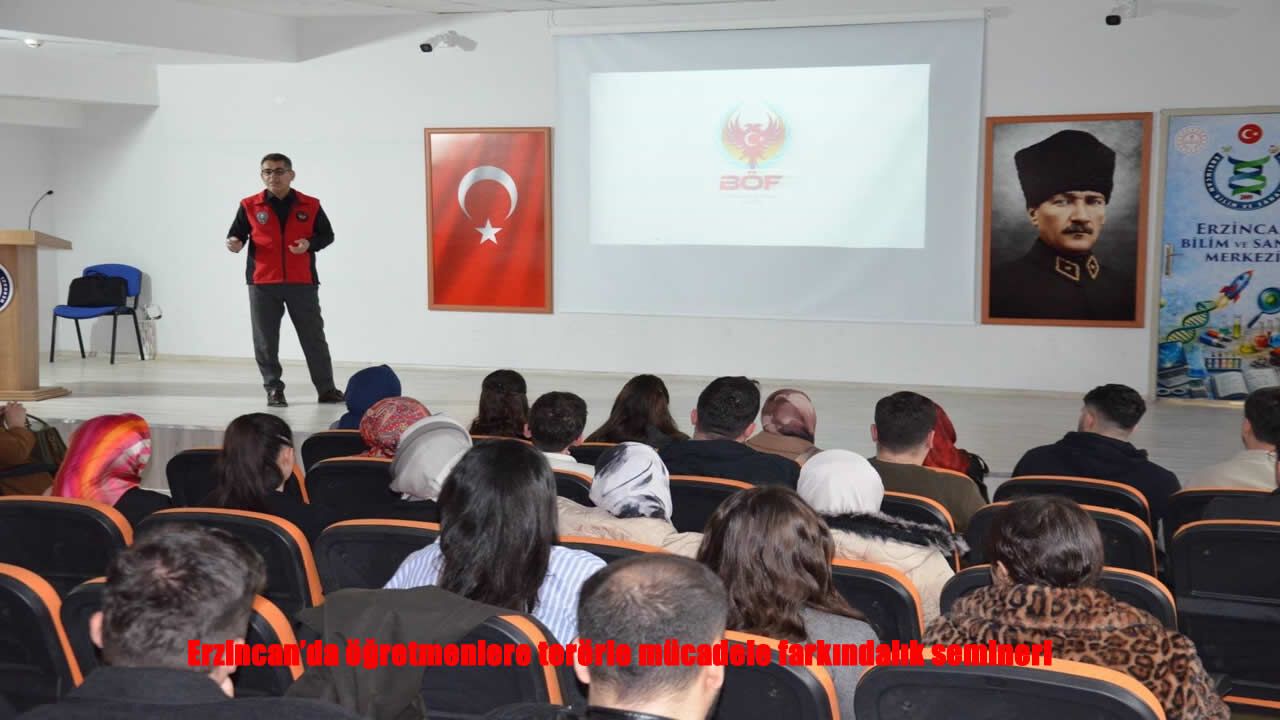 HABER49- Erzincan’da yeni atanan öğretmenlere yönelik terörle mücadele kapsamında bilgilendirme semineri düzenlendi. Erzincan Emniyet Müdürlüğü Terörle Mücadele Şube Müdürlüğü personelince, Erzincan İl Milli Eğitim Müdürlüğü katkılarıyla "Gençlik Sizin Eseriniz Projesi" kapsamında eğitim gerçekleştirildi. Erzincan Bilim ve Sanat Merkezi konferans salonunda düzenlenen seminerde 55 öğretmene eğitim verildi. Seminerde, terör örgütlerinin gençler üzerindeki faaliyetleri, eleman temin etme yöntemleri, radikalleşme süreçlerinde dikkat edilmesi gereken hususlar ile bu faaliyetlerin önlenmesine yönelik farkındalık konularında bilgilendirme yapıldı. Program sonunda katılımcılara çeşitli hediyeler takdim edildi.