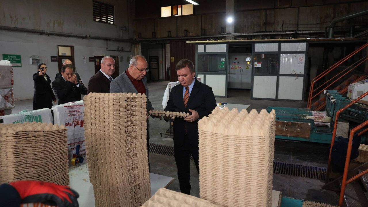 Tesiste 20’li ve 30’lu yumurta viyollerinin üretildiği, ürünlerin geri dönüşüm malzemelerden yapıldığı ifade edildi.