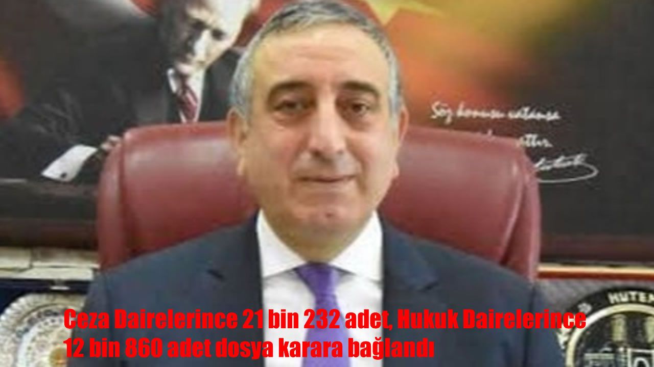 Ceza dairelerince karara çıkarılan 21 bin 232 dosyadan 21 bin 4 adedinin Cumhuriyet Başsavcılığı tarafından görüldü işlemi yapıldığını ifade eden Bingül, "Ayrıca Ceza Dairelerince karara çıkarılan dosyalardan 311 tanesi Cumhuriyet Başsavcılığımızca temyiz edilerek Yargıtay'a gönderilmiştir. 05 Ağustos 2017 tarih ve 30145 (Mükerrer) sayılı Resmî Gazetede yayımlanarak yürürlüğe giren 7035 sayılı Bölge Adliye ve Bölge İdare Mahkemelerinin İşleyişinde Ortaya Çıkan Sorunların Giderilmesi Amacıyla Bazı Kanunlarda Değişiklik Yapılmasına Dair Kanun'un 23. maddesinde düzenlenen 308/A maddesi uyarınca Cumhuriyet Başsavcılığımızca toplamda 921 dosyada itiraz değerlendirme işlemi yapılmış, 3 dosya değerlendirme aşamasındadır. Cumhuriyet Başsavcılığımızca yapılan değerlendirme sonucu 765 dosyada itiraz yoluna başvurulmamış ve itiraz talepleri Cumhuriyet Başsavcılığımızca reddedilmiştir. İtiraz değerlendirme dosyalarından 46 tanesi re' sen, 110 tanesi talep üzerine olmak üzere toplam 156 dosyada ilgili Ceza Dairesi kararına itiraz yoluna gidilmiş, 106 itiraz Ceza Dairelerince kabul edilmiş, 41 itiraz Ceza Dairelerince reddedilmiş, 9 itiraz ise ilgili Ceza Dairelerince değerlendirme aşamasındadır" şeklinde konuştu.