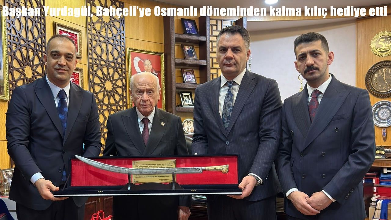 HABER49- Milliyetçi Hareket Partisi Genel Başkanı Devlet Bahçeli ziyaret eden Yurdagül ve ekibi, Ramazan Ayında yapılan çalışmalarla alakalı bilgilendirmede bulunuldu ve kendisine Osmanlı döneminden kalma kılıç hediye etti.
