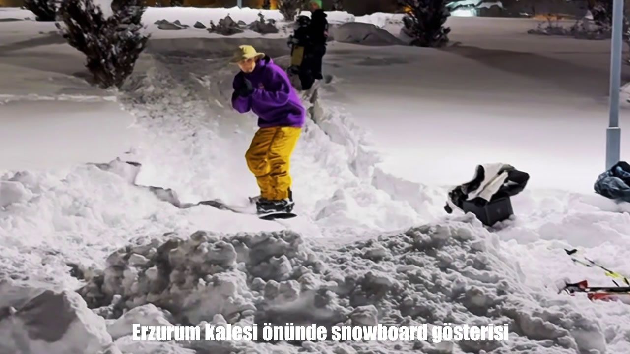 HABER49- Tarihi kalenin önünde yapılan snowboard gösterisi, çevrede bulunan vatandaşların da ilgisini çekti. Gençlerin karın keyfini çıkardığı anlar cep telefonu kameralarına yansıdı.