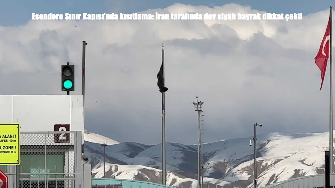 HABER49- ABD ve İsrail ile İran arasında yükselen gerilim, Hakkari’nin Yüksekova ilçesindeki Esendere Sınır Kapısı’nda sıkı önlemlerle hissediliyor. İran tarafında asılan dev siyah bayrak, 40 günlük yas ilanının simgesi olarak dikkat çekti.