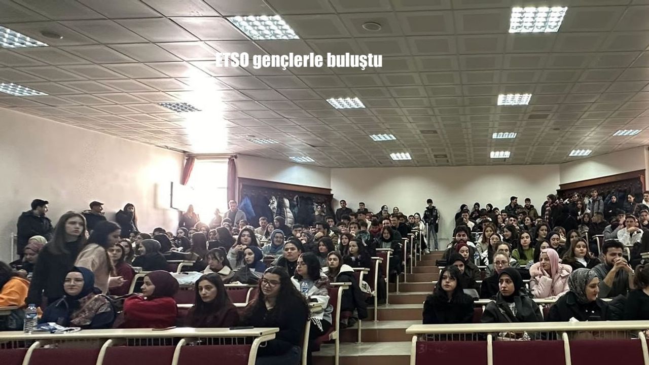 HABER49-"Girişimcilik, sektöre geçişte beklentiler ve kaygılar" içerikli söyleşide; TOBB Erzurum Kadın Girişimciler Kurulu Başkanı Kübra Alioğulları, ETSO Meclis Üyesi ve TOBB Erzurum Genç Girişimciler Kurulu Başkanı İsmail Suci, Erzurum Çalışma ve İş Kurumu İş ve Meslek Danışmanı Ali Haydar Kolik, ETSO Meclis Üyesi Cüneyt Güvenli, ATA Teknokent Müdür Yardımcısı Doç. Dr. Yakup Uzun, bilgi ve tecrübelerini öğrencilerle paylaştı.