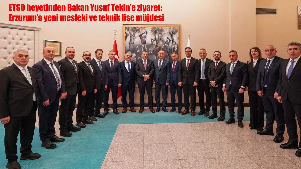 HABER49- TOBB Yönetim Kurulu Üyesi ve ETSO Yönetim Kurulu Başkanı Saim Özakalın başkanlığındaki Erzurum Ticaret ve Sanayi Odası heyeti, Milli Eğitim Bakanı Yusuf Tekin’i makamında ziyaret etti. Erzurum’un eğitim ve yerel kalkınma vizyonunun ele alındığı görüşmeden, şehre kazandırılacak yeni bir eğitim yatırımı müjdesi çıktı.