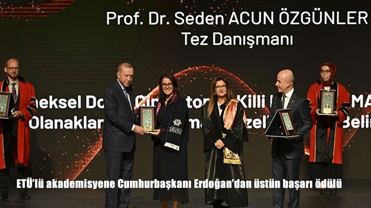 İstanbul Teknik Üniversitesi (İTÜ) Lisansüstü Eğitim Enstitüsü Yapı Bilimleri Doktora Programı kapsamında tamamladığı "Geleneksel Doğal Çimentonun Killi Kireçtaşı (Marn) ile Üretim Olanakları ve Performans Özelliklerinin Belirlenmesi" başlıklı tez çalışmasıyla ödül almaya hak kazanan Dr. Öğr. Üyesi Nazife Özer, ödülünü Cumhurbaşkanı Erdoğan’ın elinden aldı.