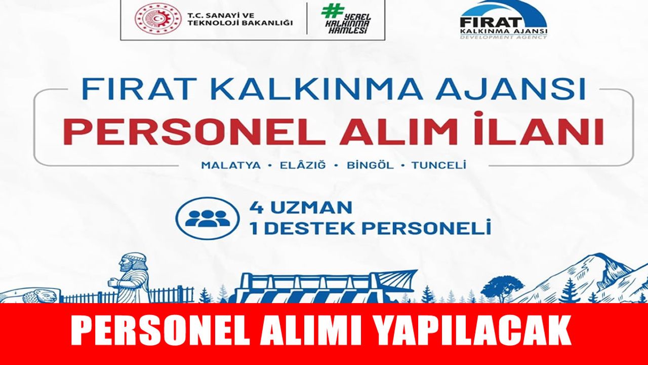 Duyuruda ayrıca Merkezi Malatya'da bulunan Fırat Kalkınma Ajansı'nda sınavda başarılı olan adayların, Ajans Genel Sekreterliği'nin uygun göreceği Bingöl, Elazığ, Malatya veya Tunceli illerinden birinde görev yapmayı başvuruyla kabul etmiş sayılacağı ifade edilerek, detaylı bilgiye Fırat Kalkınma Ajansı'nın web sayfasından ulaşılabileceği belirtildi.