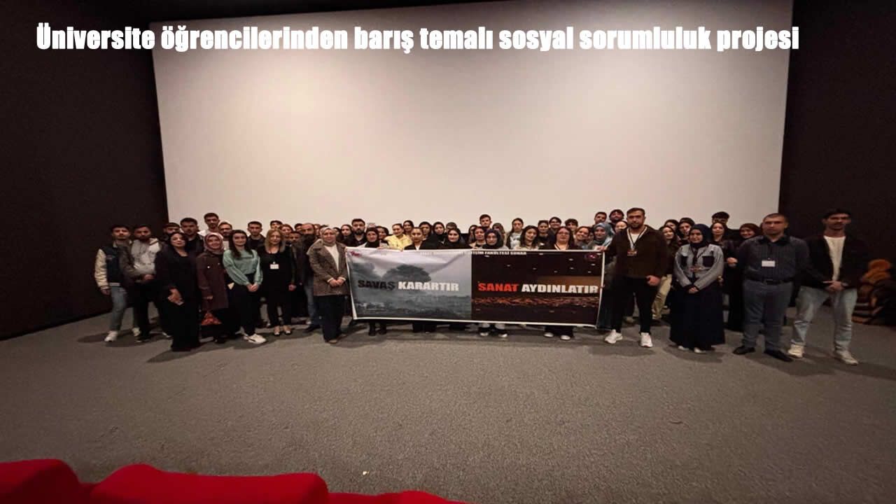 HABER49- Elazığ Fırat Üniversitesi İletişim Fakültesi Halkla İlişkiler ve Tanıtım Bölümü öğrencileri, ders kapsamında sosyal sorumluluk projesi düzenledi. "Savaş Karartır, Sanat Aydınlatır" sloganıyla gerçekleştirilen etkinlikte öğrenciler, barış temasını sinema aracılığıyla işledi. Proje, bölümün ders müfredatı kapsamında hayata geçirildi.
