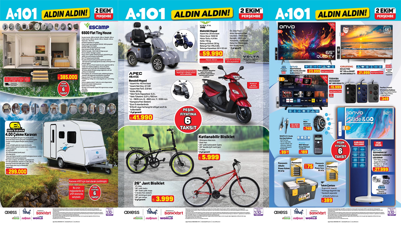 A101, Ekim ayının ilk haftasına özel aktüel ürünlerini tüketicilerin beğenisine sundu. 2 Ekim itibarıyla mağazalarda ve online platformlarda satışa sunulan ürünler, ev ihtiyaçlarından teknolojiye, mutfak gereçlerinden kişisel bakım ürünlerine kadar geniş bir yelpazede fırsatlar içeriyor. “Aldın Aldın” etiketiyle sunulan bu kampanya, uygun fiyat avantajıyla alışveriş tutkunlarını cezbederken, özellikle dikiş makinesi, blender seti ve dijital termos gibi pratik ev aletleri öne çıkıyor. Haftalık aktüel ürünler, modern yaşamın ihtiyaçlarını karşılamayı hedefleyen seçenekleriyle dikkat çekiyor.