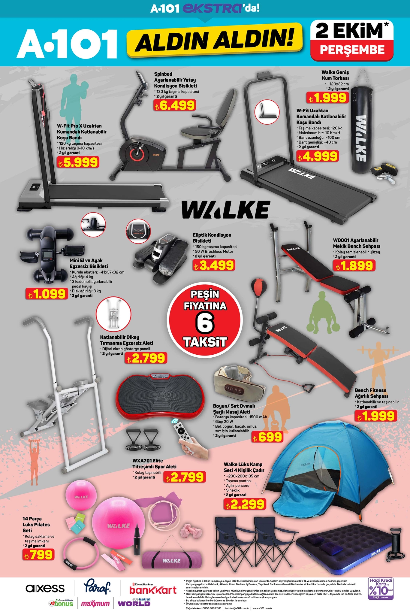 A101 kataloğunda spor ve fitness ürünleri de ön plana çıkıyor. W-Fit Pro X Uzaktan Kumandalı Katlanabilir Koşu Bandı ₺9.999, Spinbed Ayarlanabilir Yatay ve Dikey Bisiklet ₺6.499 ve Elipsik Kondisyon Aleti ₺3.499, evde spor yapmak isteyenler için ideal. Mini el ve ayak egzersiz aleti ₺1.099, WXAT01 Elite Titreşimli Spor Aleti ₺2.799 ve 14 Parça Pilates Seti ₺799 farklı egzersiz ihtiyaçlarına hitap ediyor. Katlanabilir dikey bisiklet ve eliptik aleti ₺2.799 fiyatıyla hem tasarruf hem de pratik kullanım sağlıyor.