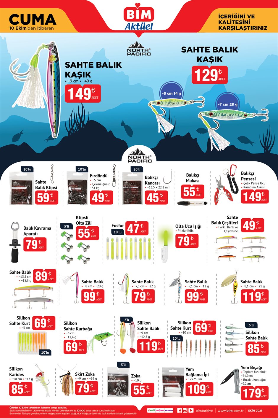BİM bu hafta hobi tutkunlarını da unutmadı. Özellikle balıkçılıkla ilgilenenler için North Pacific olta takımı, olta makinesi, sahte balık çeşitleri ve balıkçı ekipmanları geniş bir yelpazede sunuluyor. Olta kamışı (2.70 m) ₺1.390, olta makinesi (4000’lik) ₺1.590 ve olta sehpası ₺319 fiyatlarıyla katalogda yer alıyor.