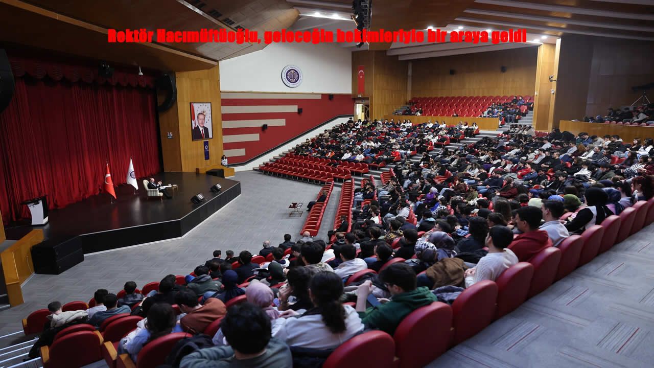 Samimi bir atmosferde gerçekleşen buluşmada Rektör Hacımüftüoğlu, öğrencilik yıllarına dair anılarını aktarırken, meslek hayatının ilk dönemlerinde edindiği deneyimlerden kesitler sundu. Akademik kariyer sürecinde karşılaştığı zorluklar ve elde ettiği kazanımlar üzerinden öğrencilere önemli tavsiyelerde bulunan Hacımüftüoğlu, hekimlik mesleğinin yalnızca bilgi değil, aynı zamanda yüksek sorumluluk ve fedakârlık gerektirdiğine vurgu yaptı.