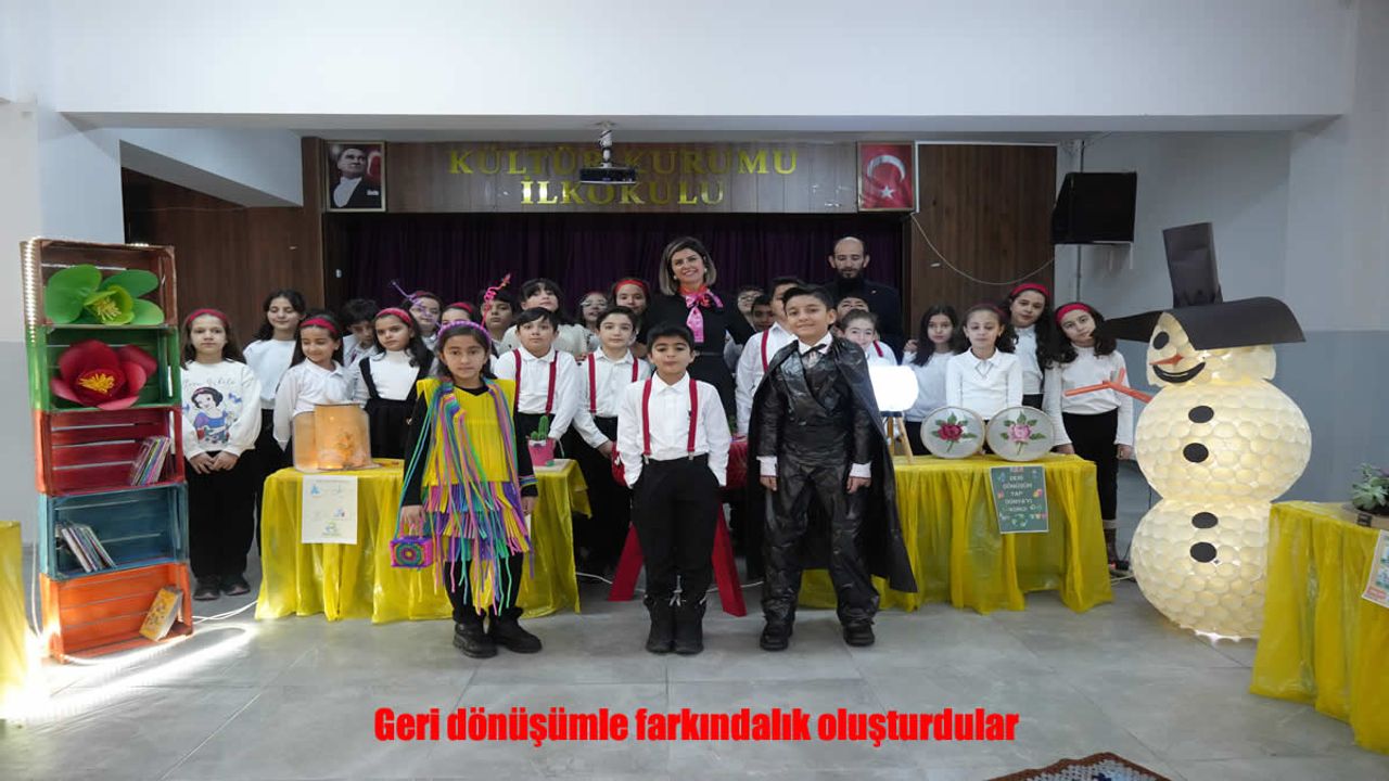Kültür Kurumu İlkokulu 4-C sınıfı tarafından, sınıf öğretmeni Güzide Zereybilek Yıldırım rehberliğinde hayata geçirilen Geri Dönüşüm Sergisi, öğrencilere çevre duyarlılığı kazandırmayı ve atıkların doğru şekilde değerlendirilmesinin önemini vurgulamayı amaçladı. Sergide, geri dönüştürülebilir materyallerin yaratıcı, geliştirici ve eğitici ürünlere dönüştürülmesiyle sürdürülebilir bir geleceğe katkı sunulması hedeflendi.