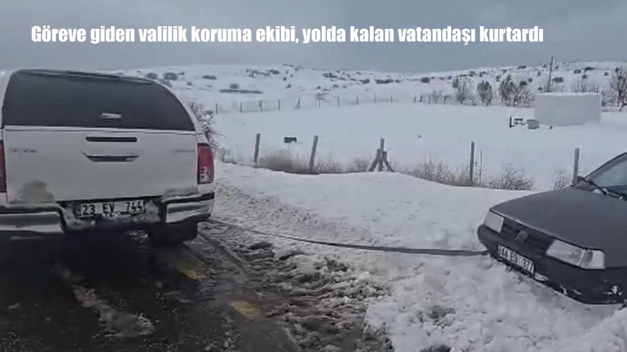 Vatandaşın aracıyla kara saplandığını fark eden Valilik Koruma Ekibi, derhal duruma müdahale ederek hasta vatandaşın aracını mahsur kaldığı yerden çekti ve vatandaşın güvenli bir şekilde yoluna devam etmesini sağladı. Aracı kurtarılan şahıs, ekiplere teşekkür etti.