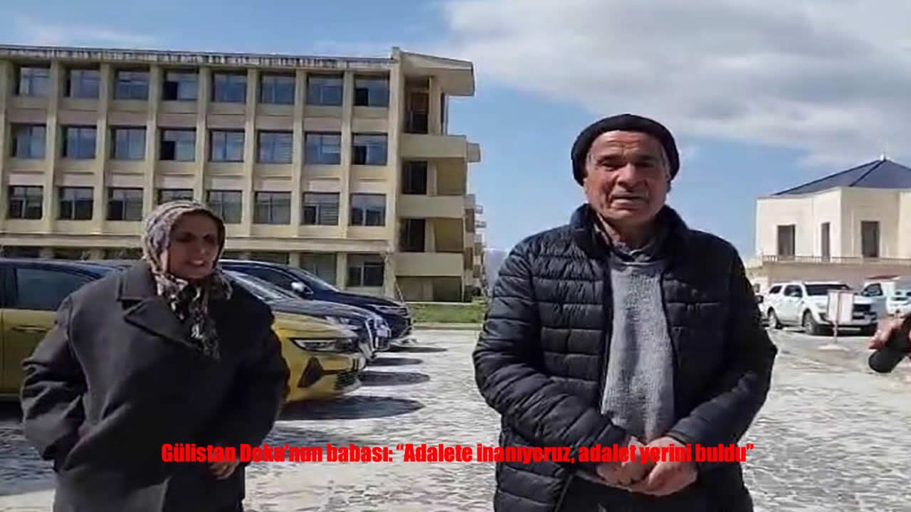 Durumdan haberdar olan Gülistan Doku'nun ailesi Tunceli adliyesine geldi. Baba Doku, "Adalete inanıyoruz, adalet yerini buldu. Adalet için teşekkür ederim. Umudumuzu kaybetmedik. Adalet güvendiğimiz için, adalet yerini buldu. Herkese teşekkür ederim" diye konuştu.