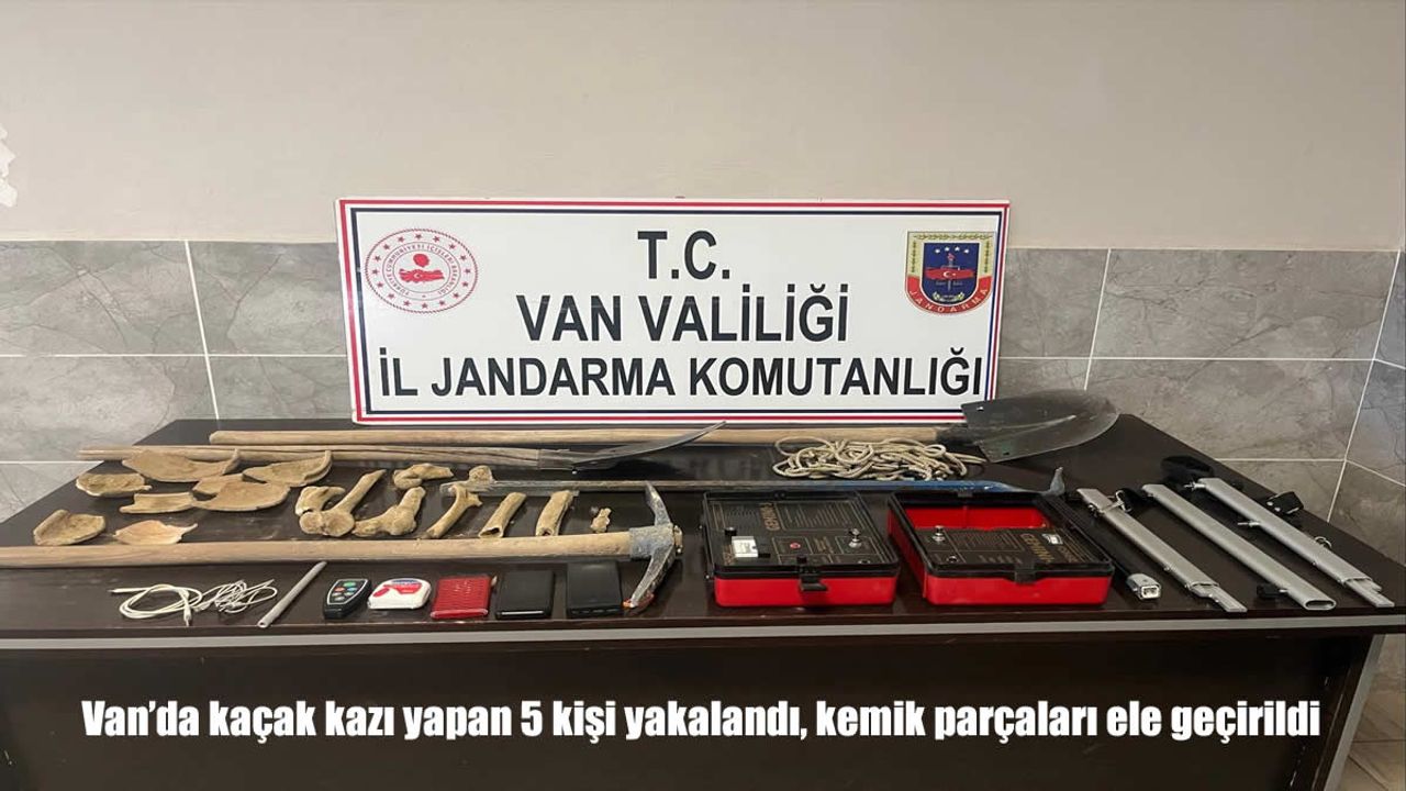 HABER49- Van’ın Gürpınar ilçesinde kaçak kazı yapan 5 kişi yakalanırken, şahıslarla birlikte kemik parçaları, dedektör ile kazı malzemesi ele geçirildi.