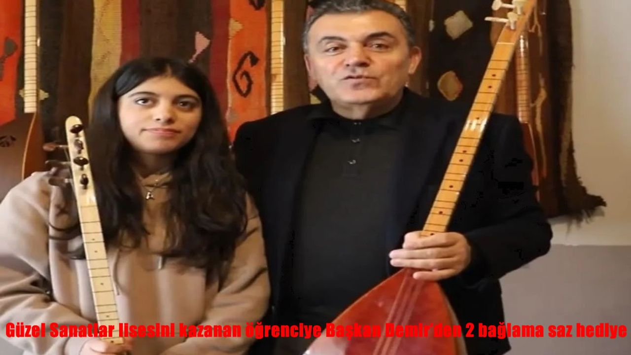 Başkan Demir, "Sevgili kızımız Azra, Ardahan’da bir ilk olan belediyeye bağlı olarak açmış olduğumuz Nuri Vatan Kültür Merkezi’mizde 1 yıldır düzenli olarak saz eğitimi alıyordu. Müziğe olan ilgisini hep gözlemliyorduk. Girmiş olduğu sınavı da kazanarak artık Elazığ’da Güzel Sanatlar Lisesi’ni okuyacak. Hepimiz çok mutlu olduk, büyük gurur duyduk. Kendisine çok istediği kısa ve uzun saplı olmak üzere 2 adet bağlama sazı hediye ediyorum. Buradan ayrıca şunu da söylemek istiyorum. İlk defa Azra ile başladık tabi. Bundan böyle Nuri Vatan Kültür Merkezi’ndeki kurslardan yararlanarak sanat alanında işte akademik olsun, konservatuvar olsun vesaire başarılı öğrencilerimize 1 adet enstrüman hediye edeceğiz."