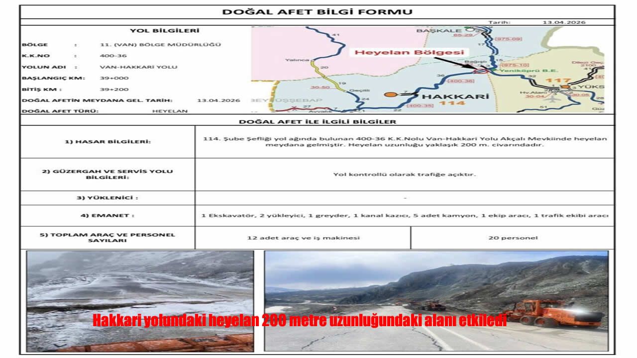 13 Nisan 2026 tarihinde Akçalı mevkiinde yaşanan heyelan, kara yolunda aksamalara neden oldu. Hakkari Valiliği tarafından yapılan açıklamada, 400-36 K.K. numaralı güzergâhta meydana gelen toprak kaymasının geniş bir alanı etkilediği belirtildi.