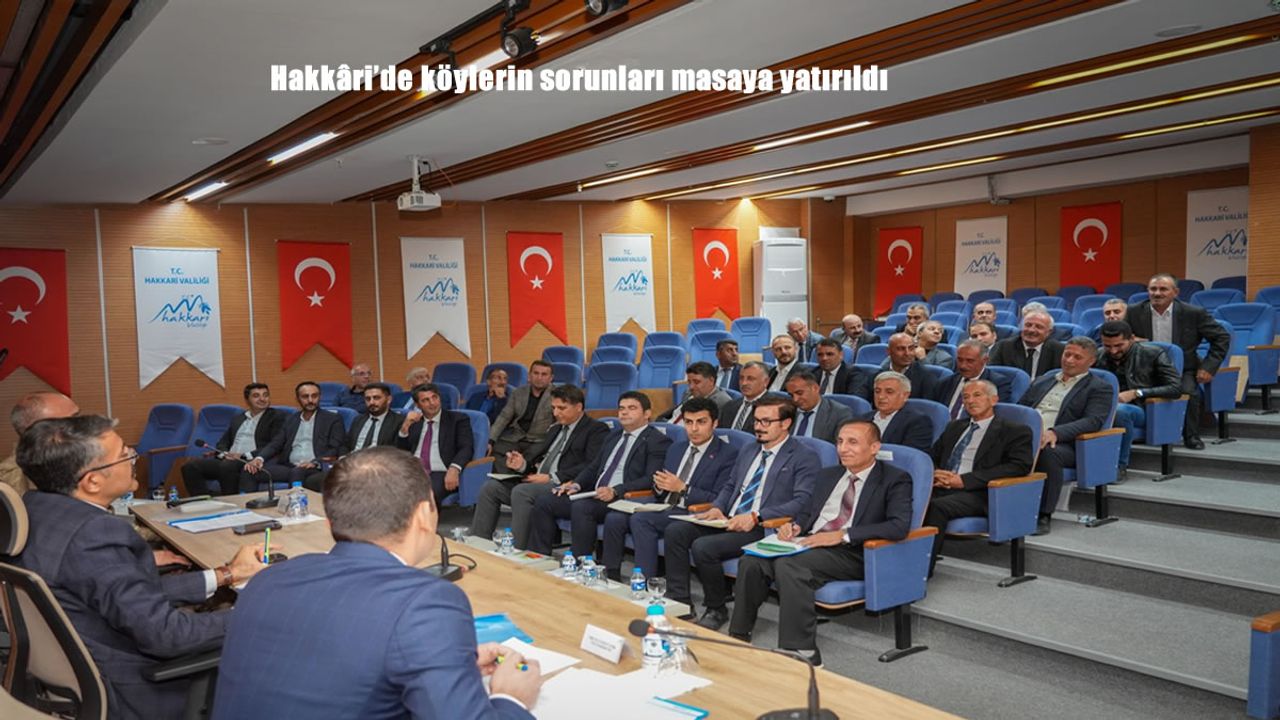 HABER49-Hakkâri Valiliği konferans salonunda Vali Ali Çelik başkanlığında; Vali Yardımcısı Cüneyt Zor, İl Jandarma Komutanı Tuğgeneral Cafer Öz, ilgili kamu kurumlarının müdür ve temsilcileri ile merkez ilçeye bağlı köy muhtarlarının katılımıyla bir toplantı gerçekleştirildi. Toplantıda, köylerde yaşanan sorunlar ve vatandaşların talepleri ele alındı. Muhtarların ilettiği sorun ve istekleri dinleyen Vali Çelik, çözüm önerileri üzerine istişarelerde bulundu.