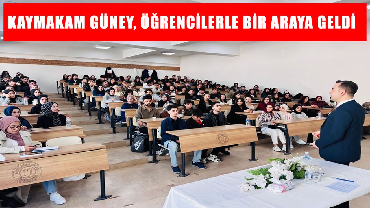 Geleceğin yöneticileriyle bir arada olmaktan memnuniyet duyduğunu ifade eden Güney, kamu yönetiminin sahadaki uygulamalarına değindi. Kendi mesleki yolculuğundan örnekler vererek öğrencilere motivasyon sağlayan Kaymakam Güney, kamu hizmetinde sorumluluk, liyakat ve iletişimin önemini vurguladı.